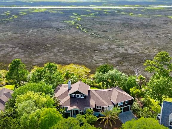 This property is located on a small quiet street and boasts sweeping Marsh Views and panoramic western sunset views. This 4 BD, 3BA home is at the end of a cul-de-sac with loads of privacy. There are gorgeous Marsh Views from almost every room of the house. Features of the home include beautiful hardwood floors throughout the lower level and a large bonus room with built-ins located on the second floor. Some of the other features include a large foyer, 2 living areas, renovated kitchen with high end appliances, double convection ovens and a large gas cooktop. There is a beautiful brick fireplace in one of the living areas, separate dining room, a Genrac whole house generator, water filtration system just to name a few. The kitchen opens up to the second family room with built-in bookcases and french doors leading out to the deck and screened in porch. The spacious laundry room is located off of the kitchen with built-in cabinets for storage and a deep sink. The large primary suite has wide open Marsh Views, french doors leading out to the screened in porch and a cedar closet along with the large primary bath which features 2 closets, jacuzzi tub, separate shower and double vanities. There are 2 guest rooms with a jack and jill bathroom in between and there is another bedroom that could be used as an office with a large closet that has built-in shelving for computer, etc. and an attached bathroom that opens to the hallway for guests. High ceilings and crown molding throughout. The front of the house features a beautiful pond with professional low maintenance landscaping and exterior landscape lighting. The garage and the storage areas in the garage are all climate controlled and that HVAC system is 2-3 years old. Some of the improvements that have been made include the replacement of the 3 house HVAC systems (10/23) with smart thermostats. Several windows have also been replaced. This home is a must see to fully appreciate. Copy and paste the following link into a browser for a Drone Video: https://home.elevatedcoastalproductions.com/sites/yjopvmx/unbranded