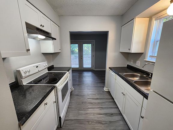 Two bedrooms, two bathroom, living room and dining room. Kitchen includes refrigerator, stove, and dishwasher. Washer and dryer connections. Central heat and air. LVP floors. Pet restrictions. Off-street parking. Small patio. Water included.