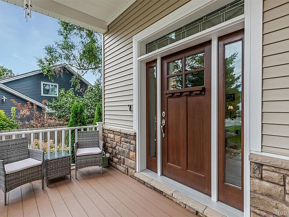 This newer home offers the ideal combination of style, comfort, and value. Step into a spacious great room with soaring ceilings, real hardwood floors, and a gas fireplace surrounded by stone with a matching wood mantel and elegant staircase. The kitchen is a dream—featuring two-tone cabinetry, subway tile backsplash, granite countertops, stainless steel appliances, an oversized island, and a full wall of cabinetry for maximum storage. A convenient powder room sits just off the kitchen near the attached garage. The partially finished basement includes high-end epoxy flooring, a full bath, and an egress window, making it perfect for future living space. Enjoy outdoor living on the covered front porch or back deck, surrounded by hand-selected limestone, colorful flowers, and a privacy fence. Additional features include a 4-zone sound system, water softener, zoned heating and cooling, a 75-gallon water heater, and a furnace with humidifier. Beautifully upgraded and move-in ready—this home truly has it all!