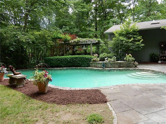 Located in lower Weston on a quiet street and set back off of the road. Beautifully landscaped and meticulously kept. Bright contemporary with Two bedrooms on main floor and three on above ground lower level. Home has soaring ceilings, floor to ceiling windows and wood beams throughout. Main floor is an open floor plan only separated by a floor to ceiling wood burning fireplace which can be viewed from both sides. Entire home was recently painted. There is new wall to wall carpeting in all bedrooms. Also recently updated light switches and dimmers. Home has central air, newer roof and hardwood floors throughout. There are multiple outdoor decks on different levels to enjoy the outdoors and the amazing views. Home has a beautiful free form heated Gunite pool with plenty of decking and is meticulously landscaped.