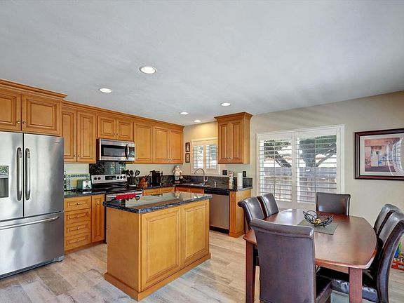 Live the Encinitas coastal lifestyle in this meticulously maintained single story Village Park home. This home has been owned by the same family for 35 years and offers 3 bedrooms and 2 baths and is located on a rare double cul-de-sac. No worries about traffic. This wonderful and inviting home has been updated and upgraded throughout and has a light, bright modern feel. There is a cozy fireplace in the living room, granite in the kitchen, dual paned windows with planation blinds, tankless water heater, and luxury plank vinyl flooring. Outside the home is a gazebo covered relaxing spa, stamped concrete front courtyard and backyard, backyard retaining wall, succulent garden, easy care artificial turf. There is an amazing side yard that might accommodate an ADU or RV parking. The home sits on an oversized lot. The community offers walking trails, pool, community room, dog park, pickle ball courts, and more. This home is walking distance to Park Dale Lane Elementary School and the community pool. The ocean is under 3 miles away. Encinitas living, double cul-de-sac, light bright remodeled modern home. Don’t miss it.