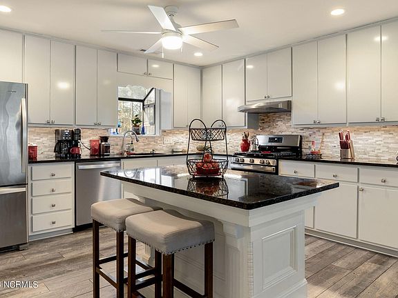 Welcome to your dream waterfront oasis in the heart of River Bend! This exquisite 3-bedroom, 2-bathroom home offers a perfect blend of luxury, comfort, and serene water views. As you enter inside, you'll be greeted by an abundance of natural light that floods through the open living room, seamlessly connecting to the dining area and kitchen. The focal point of the living room is a charming fireplace, creating a cozy atmosphere for those relaxing evenings. French doors open up to a spacious back deck, providing a perfect spot to bask in the beauty of your surroundings. The kitchen is a culinary delight, boasting a stylish island, stainless steel appliances, a gas stove, and elegant granite countertops paired with a beautiful backsplash. Whether you're an aspiring chef or simply enjoy cooking, this kitchen is sure to inspire your culinary creativity. The owner's suite is a retreat of its own, offering spaciousness and comfort. The ensuite bathroom features a walk-in shower, adding a touch of luxury to your daily routine. Head outside to discover a 2-tiered deck, an ideal space for grilling and entertaining guests. The fenced-in backyard area ensures privacy, making it the perfect setting for outdoor gatherings or simply enjoying a peaceful moment by the water. Take in the beauty of the surroundings, with a dock and boat lift at your disposal, ready to fulfill all your waterfront adventures. Convenience is key, as this home is just a short drive away from Historic Downtown New Bern and the Carolina East Medical Center. Experience the perfect blend of luxury, comfort, and waterfront living in this stunning River Bend home. Call us today to schedule your private tour.
