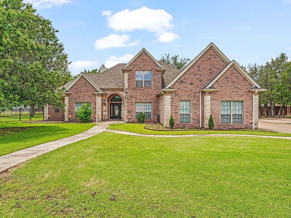 Beautiful home in one of Stephenville’s most sought-after neighborhoods—Heritage Hills! Located at the end of a quiet cul-de-sac, this 4-bedroom, 3.5-bath house features granite countertops, new paint, new carpet upstairs, custom plantation shutters throughout most of the home, soaring vaulted ceilings, big kitchen perfect for entertaining, plenty of room for parking, and a brand new metal yard fence. The master bedroom is located on the main level, while the remaining bedrooms are upstairs. There is plenty of storage throughout the home with thoughtful built-ins and extra space everywhere you look. The house also features a dedicated office and a high-quality 9x12 storage building for your lawn mower or extra stuff.