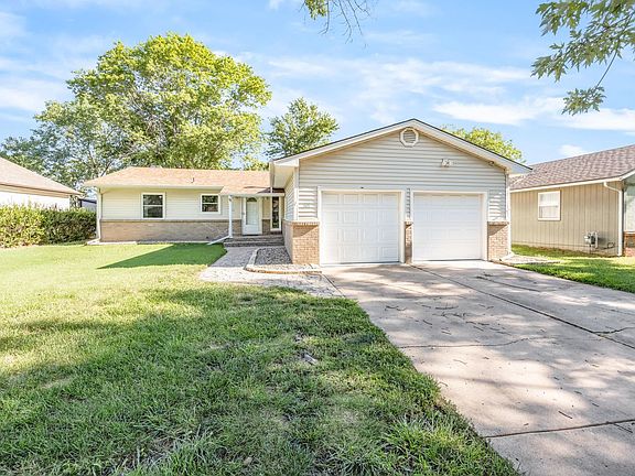 Located in south Goddard, blocks away from public pool, park and all 3 levels of Goddard schools. 3 Bedroom, 2 Bath ranch style home with additional finished room in basement. Welcome home to a tiled entry and a living area with a wood burning fireplace. The fully applianced kitchen has tile floors, new counter tops and backsplash, lots of cabinet space with silent close drawers and pull out shelves in the pantry. There is a dining area with wood laminate flooring adjoining the kitchen. Three bedrooms and 2 bathrooms are on the main floor, a master bathroom and a full guest bathroom, both updated. Downstairs you will find a family room, an additional finished room, storage space and the laundry room. Outside is a fully fenced back yard with a large concrete patio and mature trees. The 2 car garage has separate doors and openers. Set up a showing to see this home today!