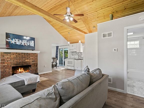 Hearthside Haven- Tuck into easy lake-community living in this charming single-level home, a quick stroll to Highland Lakes Beach 1 complex and clubhouse amenities. A covered front porch opens to an airy, open-plan living space under a warm pine-clad vaulted ceiling. Gather by the brick fireplace, then move seamlessly to the bright white kitchen granite counters, tile backsplash, pendant lighting and the dining area with sliders to a sunny rear deck for effortless indoor/outdoor entertaining. Two comfortable bedrooms sit on opposite sides of the living area for privacy, served by a refreshed full bath with subway tile. A ladder leads to a cozy loft perfect as a reading perch, hobby nook, or bonus guest alcove. Major 2021 upgrades deliver peace of mind: new drilled well, new septic, new siding and gutters, updated electrical, propane forced-air heat with central A/C, and new appliances. A propane generator is included. Outside, enjoy a level yard and the convenience of nearby Highland Lakes community amenities: five pristine lakes, seven sandy beaches. Activities for all interests and ages; sailing, racket sports, hiking, fishing, swimming, art, music, play group and more. Winter sports are just a short drive away at Mountain Creek. Whether a year-round residence or a low-maintenance getaway, this move-in-ready ranch could be your gateway to lake living!