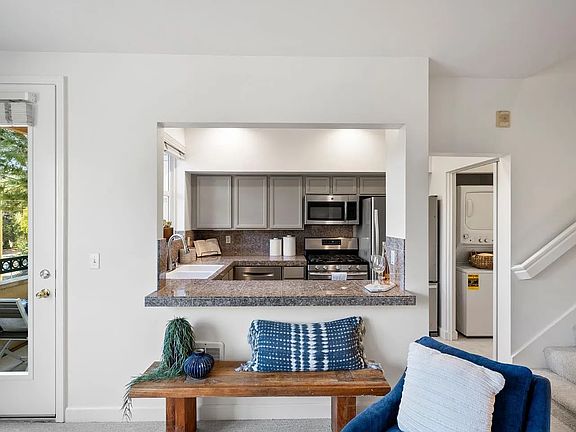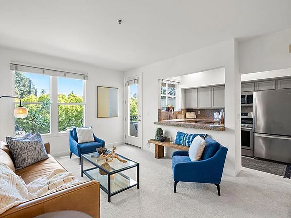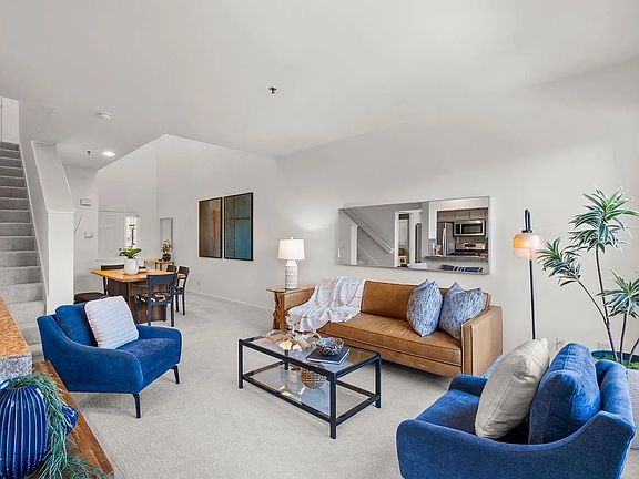 One block from the fantastic dining, shopping and entertainment along Castro Street, this townhouse-style condo offers the best of downtown Mountain View living! Double-height ceiling in the entry and dining area welcome you into the light filled living space that opens to a charming balcony.The kitchen features a suite of stainless steel appliances and abundant storage space. Both bedrooms are en-suite and the primary features a generous walk-in closet. Additional comforts include in-unit washer and dryer, half bath convenient for guests and two reserved parking spaces. Completely refurbished with fresh paint, new carpet, and updated fixtures. Newer development with underground garage, community bike storage and gated entry into the complex. Proximate to major tech employers, Downtown Mountain View Caltrain Station, SR-85, HWY 101 and Central Expressway, this home is a must-see! Renter is responsible for all utilities. 12-month lease. No smoking.