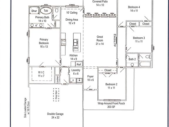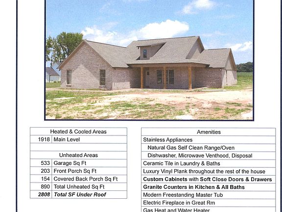 Wrap around front porchCovered patioSplit bedroom planKitchen islandStainless appliancesLvp and ceramic flooringSpacious rooms