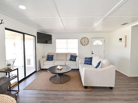 Lakefront home with canyon views in the private community of Devil's Shores. The home has been recently renovated. Upon entering the home, you will immediately notice the open-concept living space and two sliding doors that provide beautiful views of the canyon from inside the home. Upgrades to home include a new kitchen, vinyl flooring, central A/C & heating, Septic Tank. There are two bedrooms. There is one bathroom in the home, the water pressure is fantastic. A washer and dryer are included in the rental. The exterior of the home is spacious, it includes a covered shed, a carport for two cars, and a holding tank for fish. The ideal tenant for this home loves nature and being outdoors fishing, hiking, boating, or kayaking. Appreciates the peaceful nature of the canyon and the community.