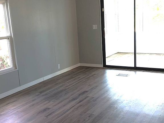 This 2 bedroom 2 bath home is unfurnished. It has new flooring throughout, glassed in lanai on front of home, new a/c, new vanities in both baths, new windows, new countertops, freshly painted, driveway painted and sealed.