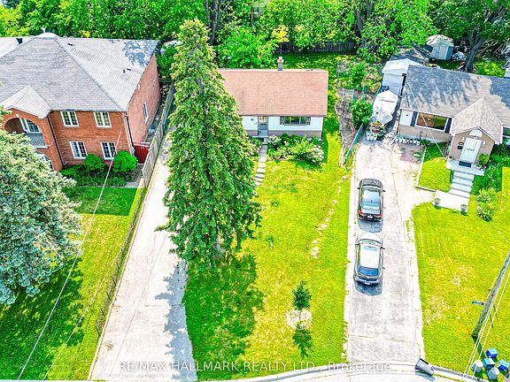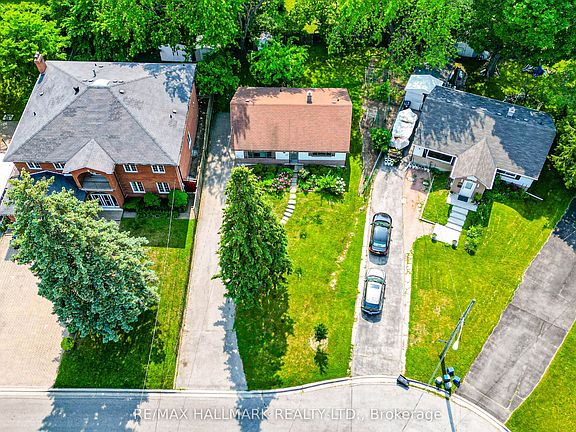 Land value property, large pie shaped lot, front 47.4' south side 115.84', north side 126.38, rear 84.05. Many large homes in this neighborhood, may be suitable for a large home plus a secondary garden dwelling home (with city approval). Two beautiful large hardwood trees in the backyard, very quiet peaceful location. Close to Scarborough Health Network hospital, L'Amoreaux Sports Complex, Tam O'Shanter Golf club, Kennedy & Finch transit & shops, Pacific Mall & easy access to the 401 & 407. Drawings & floor plans for a new home are attached.
