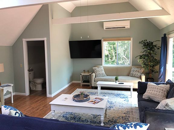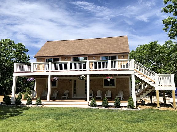 This charming reverse-style home is ideally located near Long Point Beach and offers a perfect blend of comfort and functionality for year-round living or seasonal getaways. The first floor features three spacious bedrooms, a full bath, and a convenient laundry room. On the second floor, you'll find soaring cathedral ceilings and an open-concept living area, complete with a cozy living room, dining space, and kitchen. Glass doors throughout the space lead to a large deck, offering a peaceful view of the private backyard. Recent updates include fresh landscaping and various interior improvements. With Long Point Beach just down the road and access to the exclusive Lambert's Cove Beach, this home is the ultimate Island retreat. Whether you choose to enjoy it as is or explore its expansion potential, this property is a true gem.
