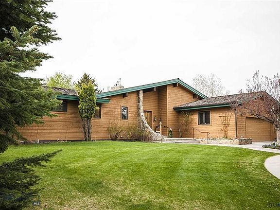Come visit this majestic home on the coveted southside of Bozeman. As you walk in the front door, you are greeted by a massive moss-rock fireplace leading to a high vaulted ceiling in the enormous great room, which has a wall of windows looking out upon a beautiful backyard that flows into dedicated neighborhood green space. Living room windows have bench seating that also serve as storage. Kitchen has bay window, island, eating bar, pullouts, pantry, lazy susans, lots of storage, and extra warming drawer. Downstairs is a bedroom, full bath, and a large bonus room, which could serve as a den, family room, office, home theater, or an additional bedroom. Other features include a sunroom with a hot tub and passive solar windows, a large master suite, efficient hot-water baseboard heating, a central vacuum system, wet bar on each level, circular driveway, 2-car garage, and so much more. Pride of ownership really shows in this large home built by Bruce/John Wilson and designed by Wessel.