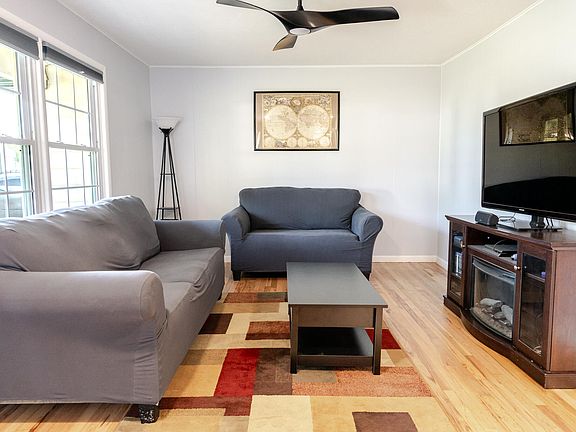 This charming 3 bedroom, 2 bathroom home has been thoughtfully refreshed with new windows, paint, and modern lighting fixtures. You'll love the updated kitchen and bathrooms, along with the warmth of beautiful hardwood floors.Step outside to enjoy the large fenced backyard, perfect for pets, kids, and gatherings, complete with a deck for entertaining. The maintenance-free metal siding and roof provide peace of mind for years to come.Located in a great neighborhood close to schools, shopping, and amenities, this home blends style, function, and convenience!
