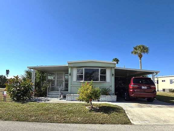 108 Circle Dr, enjoy the Florida lifestyle in this move-in ready, fully furnished, Turn key 2 bedroom, 1 full bathroom home. Located in the desirable, pet- and motorcycle-friendly Lake Village community, this home combines comfort and convenience, ideal for year-round living, a seasonal retreat, or an investment property. The peaceful setting is just 1.8 miles from the Gulf Coast's renowned beaches and scenic intracoastal waterways, placing you close to everything while maintaining a sense of privacy and relaxation. This charming residence features a bright, open floor plan with inviting living and dining areas, an additonal enclosed Lania was added off the living room for added Living space and convenience. The kitchen and dining area have been updated with new flooring and an abundance of newer windows creating a plethora of natural light throughout. The owner provided a list of updates including: a durable rubber-insulated "roof-over" system, updated laminate and tile flooring throughout New 40 gal Water Heater New permitted carport installed. Newer windows installed 2023 Newer 2.5-ton HVAC system 2023. Owner Does carry Mobile Home Insurance. The home's exterior offers attractive curb appeal with mature landscaping and blooming foliage. Relax on your screened-in side porch, complete with comfortable outdoor furnishings, ideal for enjoying the refreshing coastal breeze. Also, the backyard has another area paved area to sit outside and enjoy our sunshiny warm days. There is a large utility shed under the carport housing washer and dryer machines plus extra storage space. 2 car driveway offers plenty of parking. It's the Prime location-no neighbors behind or on one side. This home backs up to some of the community amenities like bocce ball courts, putting green, fitness center and the Tiki Bar area with BBQ. Lake Village is a distinguished 55+ community in the coastal city of Nokomis, Florida, offering resort-style amenities such as a heated pool, whirlpool spa, fitness center, billiard rooms, putting green, bocce and horseshoe courts, library, banquet hall, and multiple Tiki, BBQ picnic areas. On-site Storage for RV and boats add further convenience. The monthly lot rent of approximately $1,100. This includes the water/ sewer, weekly lawn care, waste removal, pass-through taxes and full access to all community amenities. All prospective homeowners must complete the park's application and approval process prior to purchase. Conveniently close to award-winning beaches, restaurants, shopping, medical facilities, this exceptional residence offers the perfect blend of relaxation, recreation, and coastal charm in one of Southwest Florida's most desirable 55+ communities.