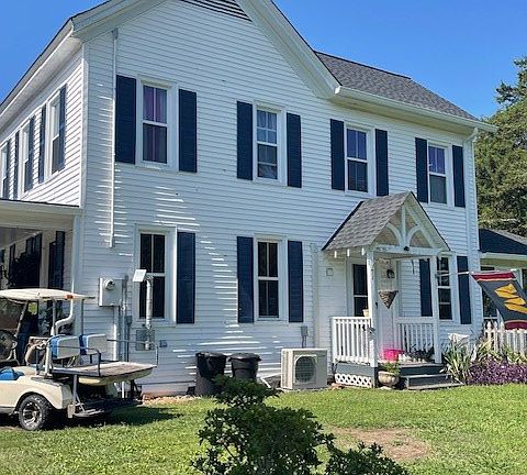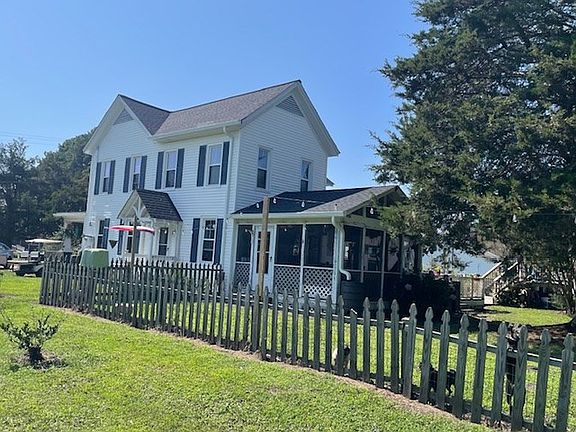 WELCOME TO THE COUNTRY! CHARM, TRANQUILITY, AND BEAUTY! THIS BEAUTIFUL FARMHOUSE HAS AN INCREDIBLE COUNTRY FRONT PORCH PERFECT FOR SITTING AND ENTERTAINING. THIS HOME HAS SO MUCH CHARACTER FROM THE ORIGINAL HARDWOOD FLOORS AND THE STAIR BANISTER TO THE ARCHITECTURAL DESIGNS. REPLACEMENT WINDOWS, GUTTERS, AND NEW ROOF IN 2024. DUAL WHISPER UNITS (4 ZONE) DOWNSTAIRS AS WELL AS BASE BOARD HEAT AND WOODSTOVES. THE UPSTAIRS IS COOLED & HEATED VIA HEAT PUMP. NEW WATER SOFTENER SYSTEM IS IN PLACE, NEW WELL PRESSURE TANK 2024, EXCELLENT WIFI (BREEZELINE). THE BACK SCREENED PORCH IS LARGE AS WELL AS THE BACK DECK OVERLOOKING BEAUTIFUL CORKSCREW & WEEPING WILLOW TREES. THERE ARE FRUIT AND NUT TREES THROUGHTOUT THE PROPERTY. THERE IS A FENCED AREA FOR FARM ANIMALS, MANICURED LAWN, AND TASTFULLY DESIGNED LANDSCAPING. TWO STORAGE SHEDS AND AN ABOVE GROUND POOL(3 YRS OLD) TO COOL OFF IN DURING THOSE HOT SUMMER DAYS. YOU CAN RIDE YOUR GOLF CART TO THE WATER, CHESAPEAKE BAY THAT IS ONLY A FEW MINUTES AWAY. CLOSE TO THE NEW POINT LIGHTHOUSE AND BAVON BEACH. THIS ARE ALSO OFFERS A PIER AND BOAT LANDING. CLOSE TO DAVIS CREEK MARINA IF YOU WISH TO KEEP YOUR BOAT CLOSE BY. COME SEE THIS ONE FOR YOURSELF.