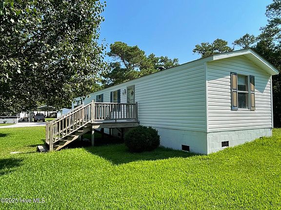 This 2Br-2bath home may need a little TLC, but it is worth it. Move in ready. Great .73 acre lot at the end of a cul-de-sac. Perfect for those with kids or pets. The trees in the front yard allow you some privacy while relaxing on the front deck. Rear patio as well (8x10) Shaded X flood zone, no flood insurance required. Just 5 minutes to the Harkers Island boat ramp by the bridge. Great for 2nd home, or year round. Easy to show.