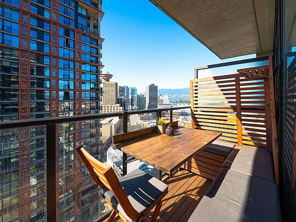 Discover the iconic Woodward’s Tower! This upper-floor, highly sought-after “08” one-bedroom offers sweeping city, harbour and North Shore mountain views from a full-width balcony perfect for entertaining or unwinding. Custom upgrades feature quartz counters, new Italian hardwood floors, a glass backsplash, extra kitchen cabinetry, recessed and LED lighting, full home automation, plus outdoor flooring with built-in dining space. Enjoy concierge and incredible rooftop amenities including a gym, hot tub & clubhouse with unbeatable convenience above London Drugs and IGA. Steps to restaurants, cozy cafés, stylish bars, boutique shops, SeaBus & Skytrain. Maintenance fees include heat, gas and internet. Pet and rental friendly. Offering the ultimate mix of modern luxury, comfort & lifestyle.