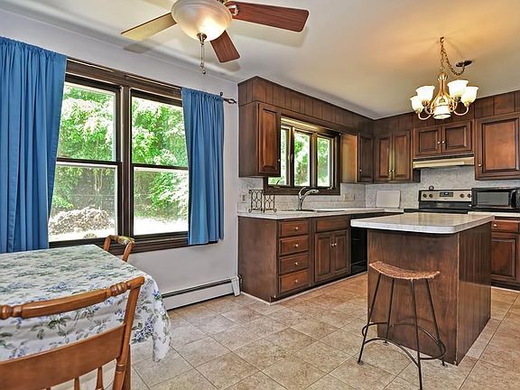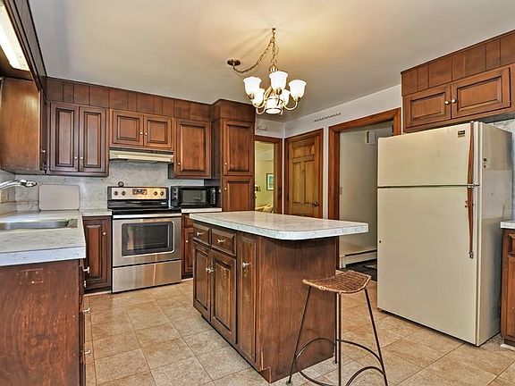 This beautiful colonial home if full of potential. Starting on the spacious first floor there is a large, eat-in kitchen with plenty of cabinetry and a functional layout. A front to back living room has a central fireplace and enormous windows on either end. The charming dining room has hardwood flooring and a nice chair rail. There is even a bonus room with another fireplace, built in bookcases, and access to the backyard. Upstairs there are three large guest rooms and a bright master suite all with hardwood flooring. There is also another full bathroom upstairs. The basement would make a great finished space with a little more work. It already has a wood stove and studs installed. The fenced backyard is perfect for summer fun with an in-ground pool and plenty of privacy. A few quick upgrades like countertops and new carpets would go a long way!
