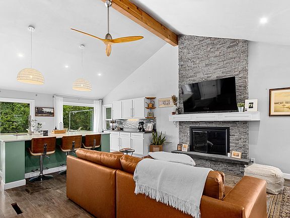 This house is absolutely stunning! This charming home has a beautiful open floor plan that will take your breath away. The fireplace and cathedral ceiling in the great room create a warm and inviting atmosphere. The amenities include a sliding barn door, huge island breakfast bar with quartz countertop, newer cabinets, under cabinet lighting, tile backsplash & SS appliances. In addition, the backyard is perfect for entertaining with a privacy-fenced yard, a fire pit, an 8x8 shed, 3 raised beds, and wooded privacy. As a bonus, the seller even did numerous other updates: remodeled bathroom, new paint, and new flooring. This one will not last long. Schedule your showing today!