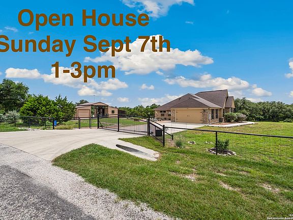 Welcome to your dream retreat in the heart of the Texas Hill Country. Set on 3 fully fenced acres, this turnkey property offers the perfect combination of comfort, functionality, and natural beauty. The 2,010 sq ft home features a well-designed split floor plan with 3 bedrooms and 2 bathrooms, including walk-in showers in both baths and a spacious primary suite with dual sinks. Large windows throughout the home provide stunning views of the surrounding acreage and mature trees, filling the space with natural light and a sense of tranquility. The property features a 42x26 metal building currently used for 2 horses, with attached 12x26 run-in stall (convertible to two 12x13's), separate enclosed hay storage area, large tack room, water and electric. This building can also be used for MULTI PURPOSE storage or workspace, as well as for other animals enrolled in 4-H and FFA school sponsored programs.. The land is perimeter fenced with durable pipe rail and woven wire, plus electric tape cross fencing for added safety and flexibility. Equestrians will appreciate the 100' x 200' natural footing riding area, ideal for training or leisurely rides. The level lot is shaded by beautiful, mature trees, offering a peaceful and picturesque setting that's rare to find. Whether you're riding in the pasture, taking in the view from the comfort of your living room, or simply enjoying the quiet, this property has everything you need to live the Hill Country lifestyle. Located in Mystic Shores-one of the Hill Country's premier communities-residents enjoy world-class amenities including two swimming pools, tennis, pickle ball, basketball, and volleyball courts, a community center, two lakeside parks with grilling and picnic areas, and a 200+ acre nature preserve. This is a rare opportunity to own a ready-to-go horse property (only 2 horses allowed for this size lot) in one of Texas's most scenic regions.