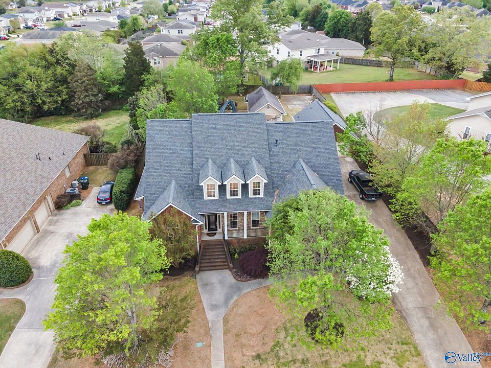 Former Model Home, Dramatic 2 story foyer w/elegant stairway & wrought iron. 3,700 sf, 4 br's, huge rec rm or 5th br, 6 baths(3/3) , family & living rms, formal dining, study, vaulted ceilings,extensive trim package, hardwood floors, limestone f/p mantle, sound & security, huge custom kitchen, XL island, granite c-tops, s/steel appliances. Awesome outdoor living: Beautiful 18x36 pool and an 18x30 covered patio w/ gas grill & fireplace, TV cable. Detached 20x30 garage, workshop w/cabinets, storage, 1/2 bath. Garage has everything you need to convert it into an apartment. Bonus room can act as a Bedroom. Fridge stays with home as well. This home is a real show place.