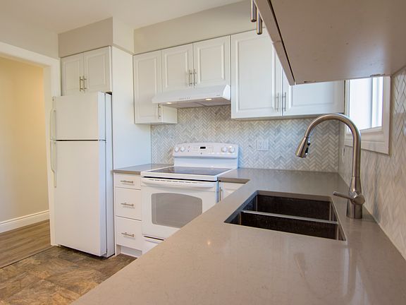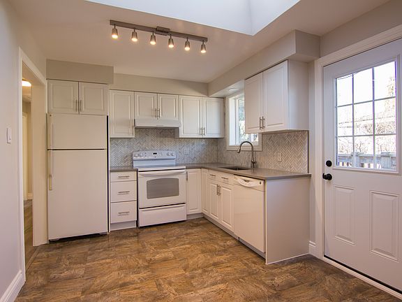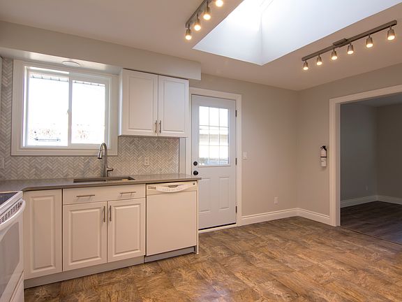 Spacious eat-in kitchenQuartz countertopsHerringbone backsplashUnique skylightLuxury vinyl plankModern led fixturesParking for three vehicles