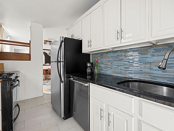 Nestled on the third floor of a pre-war walk-up building, this one-bedroom coop in Williamsburg boasts a smart layout with stylish design touches. The sunny living area offers space for dining as well as a living room set-up. The kitchen features an updated renovation including stainless steel appliances (including a dishwasher), stone countertops, mosaic tile backsplash, plenty of counter space and abundant cabinet and drawer storage. The bedroom includes dual closet storage spaces and lots of natural sunlight. An updated bathroom completes the picture for this cozy home.