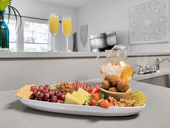 Experience the epitome of coastal living in our fully-furnished apartment, boasting a charming coastal boho design. With peaceful boho decor, yoga mats, and an essential oil diffuser, this unit is perfectly designed for high-vibing guests! Use the jaw dropping hand-painted mandala in the main room as a backdrop for morning meditations or asanas. Later, whip up a healthy meal or green smoothie in the well-appointed kitchen; gather on the peaceful conversation patio and enjoy the greenery, fountain, and zen garden; or cozy up with a good book in one of the hanging chairs!