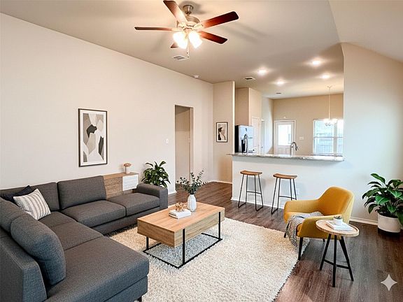 The flexible fourth bedroom at the front of the home makes an ideal home office or study. Freshly painted interior and wood blinds throughout create a warm, move-in-ready feel. Additional features include a security system with exterior camera and video doorbell, privacy-fenced backyard, and garage door openers.