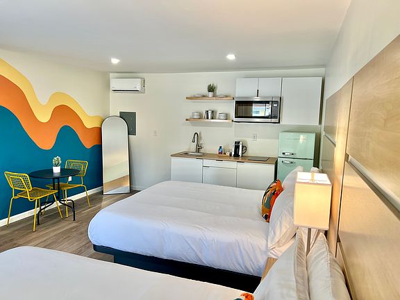 Just a stone's throw from MSU! Step into a blast from the past with our retro-inspired rooms, revamped with a modern twist for your ultimate comfort. Enjoy our stylish outdoor patio and lounge area, perfect for unwinding or socializing after a day of exploring.