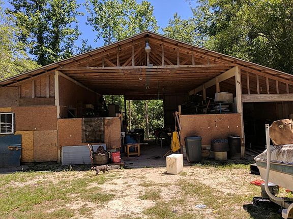 Tree-shaded property and older mobile home with very large deck around above-ground pool in back. Barn with large workshops at rear of property overlooking wetlands for lots of privacy. Home needs extensive repairs - but this is a great buy! Friendly neighbors surround this private yet convenient home just off Highway 78. Come and see all you get in this unique property.