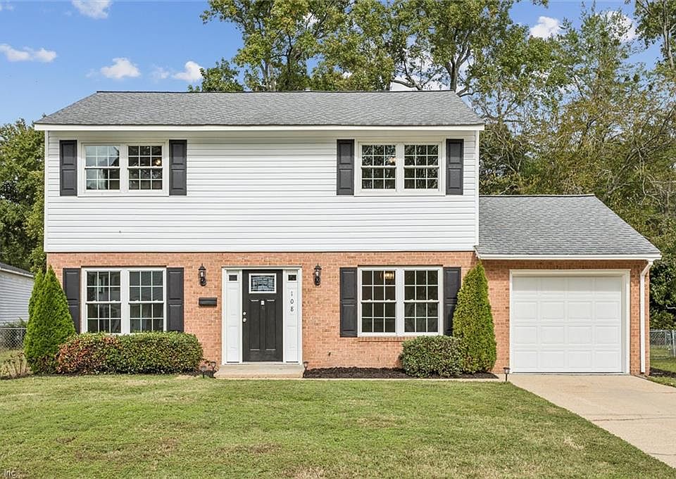 Located on a quiet cul-de-sac, this well-maintained home offers convenient access to parks, beaches, military bases, and shopping. Recent updates include a remodeled kitchen with white cabinetry, granite countertops, and stainless steel appliances, along with renovated bathrooms, updated lighting and plumbing fixtures, and replacement vinyl-clad windows providing abundant natural light. A newer roof, siding, and HVAC ensure comfort and efficiency. Luxury vinyl plank flooring enhances the first floor, while newer carpet adds comfort upstairs. The finished laundry/utility room connects to both the backyard and a fully finished garage, useful as a gym, recreation, or hobby space. The landscaped, fully fenced backyard features a concrete patio and storage shed. Move-in ready and designed for versatile living.