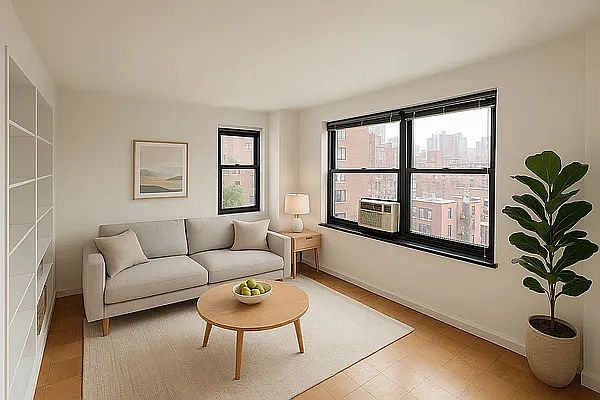 -A Large, Bright Living Room flooded with a ton of Natural Light from Oversized Windows