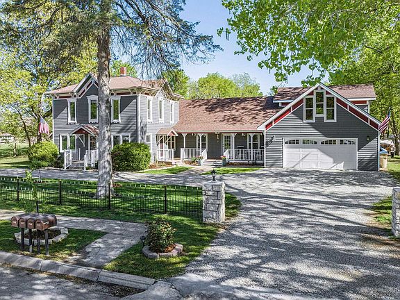 Welcome to your quintessential retreat – a haven of classic country living tailored for outdoor recreational enthusiasts who cherish comfort, beauty, and endless potential for hobbies. This incredible property combines historic charm with contemporary updates, giving you the best of both worlds all in one space. Dating back to 1870, this home has gracefully embraced the passage of time and retains many of its original features, such as intricate woodwork and original oak flooring. A circular drive welcomes you, adorned with new maple trees that will glow with a warm red color during the autumn months. The 1870s-era fence, sourced from the city, stands proudly, rebuilt with stone pillars on sturdy 3'x3' foundations. Many of the front flower beds and trees are surrounded by natural Kansas sandstone from the Wellington area, and there's also an established rose garden by the front porch that produces an abundance of natural beauty and even table decorations throughout the summer season. A 2019 addition seamlessly integrates with the original structure, boasting a Douglas fir-floored porch ideal for covered seating. Inside, bask in the luminous living spaces. The living room is seated around a beautiful decorative fireplace that makes a perfect backdrop for holiday gatherings with family or friends. Two dining areas, one in the formal dining room and the other in the kitchen, accommodate any number of guests. The well-appointed kitchen caters to culinary enthusiasts with abundant cabinet space, a double farmhouse sink, granite counters, sleek tile backsplash, and stainless appliances. With five bedrooms, three full baths, an office, and additional living spaces, this home offers generous room to spread out. The master suite, a tranquil retreat, opens to a back deck and showcases dual walk-in closets and a spa-like en suite bath with programmable Schluter heated floors and an air jet tub. The upstairs unveils more bedrooms and living areas, including a versatile family room. Above the garage, there's another 700 square feet of unfinished but prepared living space that's already fully electric and ready to be drywalled, insulated, and made into a master suite, two bedrooms with a bathroom, a homeschooling space, a complete apartment, or any other custom space you can dream up. Step outside to discover an outdoor oasis on over an acre of land. Unleash your adventurous spirit in the newly-built treehouse, complete with a playhouse below and a thrilling 125-foot zipline. Additional features include a dog run, covered kennel, expansive deck, archery range, 14' trampoline, a 25 by 75 foot fenced in garden, and lush landscaping throughout. The fenced yard boasts a private walking/running path for reflection and exercise. The fully insulated 24 by 48 foot high ceiling garage with automated doors in the front and back offers over 1,000 square feet of versatile space, giving you ample room not only for parking, but also for serving as an excellent workshop area, catering to hobbyists, DIY enthusiasts, or anyone seeking a dedicated space for hands-on projects. You'll also have plenty of room to park your camper, boat, or any other recreational vehicles next to the 48’ deep garage with access from both sides. Finally, there is a great electrified separate workshop with separate storage space and attic big enough to house all your tools, outdoor machinery, and a large mower. This home has absolutely everything you need, inside and out. Located in Sedgwick, you'll love the sweet, small town feel that's still a close drive to Valley Center, Wichita, and Newton. Schedule your private showing and hurry to see this one-of-a-kind gem today before it's gone forever!