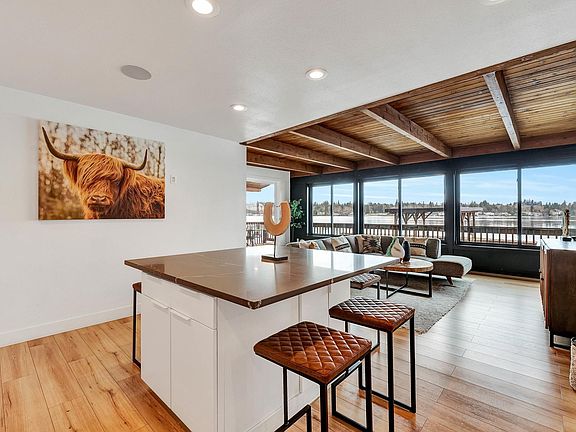 Peaceful retreat on the water. This home is tucked away on the beaches of Lake Stevens. The beautifully renovated home features the perfect sunset views everyday from the large full length wall of windows. The open living space is so ideal to capture rest and relaxations as you enjoy the view. The tastefully updated kitchen is easy to make quick meals and is stocked with all the necessities. The primary bedroom has breath taking views with its own deck. The primary bathroom has a spa like feel with a large custom tile shower and LED mirror. Private deck off the master is perfect for morning coffee. The second bedroom has an and a great view of the lake and deck. The third bedroom is perfect for an office or can fit up to a queen size bed. The outside wrap round deck is perfect to enjoy the lake life.