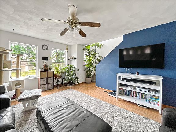 Ever popular, these townhouses in the sweet Village of Valmeyer are always in high demand. Just the right size w/2 beds / 2 baths and over 1290 Sq. Ft. Finished + the 1 car lower level garage. Spacious living room w/oversized windows bring in tons of light. Laminate flooring & real plaster finishes, plus fresh paint will welcome you home, every time. Kitchen features freshly painted cabinets, neutral counters, double oven & practical flooring. The walk in laundry also doubles as a pantry. Dining room has sliding glass doors out to spacious covered deck for those evening sunsets. Main floor bath is nice size and features a walk in shower. Upper level master bedroom has double closets, laminate flooring. 2nd. bedroom is nice size, also with laminate flooring and double closet. Upstairs bath features tub/shower combo. This is no longer considered a condo, but is now 1/2 of attached villa or duplex. This home is approximately 25 minutes from JB Bridge and 16 minutes from Waterloo Walmart.