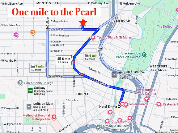 Welcome to this beautifully updated 2-bedroom, 2-bath home offering stylish, low-maintenance living in one of the city's most desirable central locations! Perfectly situated between Monte Vista, Trinity University, The St. Mary's Strip, and Tobin Hill/The Pearl, this home puts you within walking distance of iconic dining, vibrant nightlife, charming cafes, green spaces, and everyday conveniences. Step inside to discover easy-maintenance vinyl flooring throughout-no carpet anywhere-creating a clean, cohesive feel from room to room. The thoughtfully designed kitchen features stainless steel appliances, gas cooking, sleek white cabinetry, and gorgeous leathered granite countertops, making it both functional and stunning. Both bathrooms have been tastefully updated with modern finishes, offering a fresh, contemporary look. The inviting layout flows effortlessly, and the charming covered front porch with fenced-in yard provides the perfect spot to unwind, enjoy morning coffee, or relax after a day exploring the nearby neighborhood favorites. Whether you're a first-time buyer, downsizing, or searching for an investment property, this home delivers convenience, character, and modern style-all in a location that simply can't be beat. Don't miss your chance to make it yours!