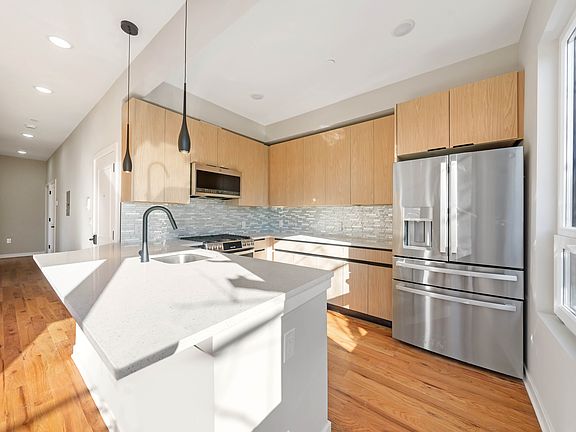 Stunning New Construction in Newark! Welcome to this ultra-modern 2BR home featuring high ceilings and sunlit rooms with ample windows that fill the home with natural light. The open layout highlights a modern chef's kitchen with quartz countertops, GE stainless steel appliances, pendant lighting, and plenty of cabinet space. Enjoy the added convenience of an in-unit washer and dryer, making everyday living even more effortless. The bathroom offers marble-style tile, dark gray flooring, and elegant black hardware for a luxury feel. Relax or entertain on the rooftop terrace with NYC skyline views, a rare perk in this area! Located just steps from Ferry Street's restaurants, cafes, shopping, parks, and major transportation, this home offers unmatched style and convenience. Parking is also available for residents, providing an extra level of comfort. A must-see for renters seeking modern living in a prime Newark location!