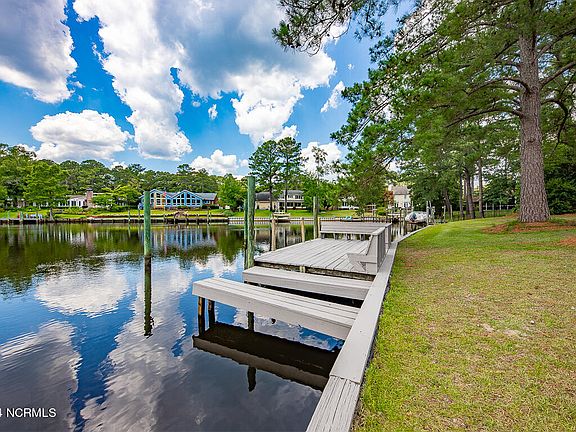 Features: 3 Spacious Bedrooms: Including a serene master suite with french doors out to the deck with water views. Master bathroom recently updated with walk in shower. Guest bathroom with tub and half bath off the laundry room. Step out onto the large deck constructed with long lasting Trex Decking: Perfect for outdoor relaxation and entertaining. An all weather Sunroom to bask in the natural light with panoramic views of the lake. Formal Living and Dining Rooms: Ideal for hosting gatherings and family dinners. Family Room: Cozy up by the beautiful stone wood-burning fireplace. Eat-In Kitchen: Equipped with a double pantry for ample storage. A 2-Car Garage: Convenient and spacious for vehicles and storage with new garage doors. Private Boat Dock and Boat Slip: Enjoy direct access to the Trent River for all your boating adventures or picture fishing right off your dock! This home combines classic charm with some modern amenities, providing an unparalleled living experience. Imagine starting your mornings with a coffee on the deck, watching the sunrise over the lake, or winding down in the family room by the fire. The sunroom offers a tranquil space for reading or simply enjoying the view. The Lakes in River Bend is a sought after community known for its serene environment, friendly neighbors, and beautiful scenery. Don't miss out on this unique opportunity to own a piece of paradise. Schedule a private tour today and make 108 Gangplank Road your new waterfront sanctuary! Your Dream Home Awaits! Some neighborhood amenities have private memberships/Fees.