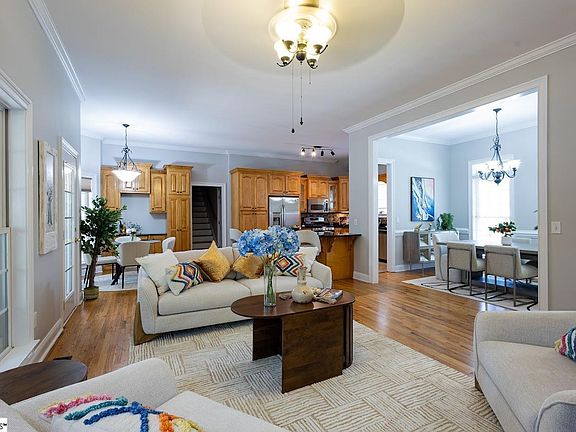 Welcome to this stunning home in the Laurel Lake neighborhood of Greer. Step onto the inviting front porch and into a bright, open living area with a cozy fireplace, seamlessly connected to a formal dining space and a well-appointed kitchen featuring ample counter space, cabinet storage, and a bar area. Just off the kitchen, enjoy an informal breakfast area complete with a built-in wall desk and additional cabinet storage. The main-level primary suite boasts a large ensuite bathroom and a walk-in closet with custom built-ins. Two additional bedrooms and a full hallway bath complete the downstairs on the other side of the home, providing privacy for guests and family. Upstairs you'll find two versatile rooms ideal for bedrooms, a bonus or rec space, or a home office, as well as a third full bathroom and convenient attic access storage. Outside, unwind on the expansive deck overlooking the backyard. A French drain was added a few years ago for improved drainage and peace of mind. The Laurel Lake neighborhood also features a community pond with fishing access for a fun day outside just a stone's throw from your front door. And in an ideal location just minutes from the vibrant Five Forks area, you have easy access to loads of dining, shopping, and entertainment options. Don’t miss your opportunity to make this charming house your home!