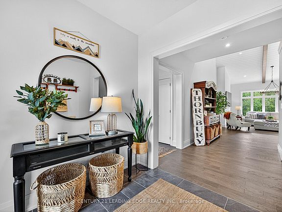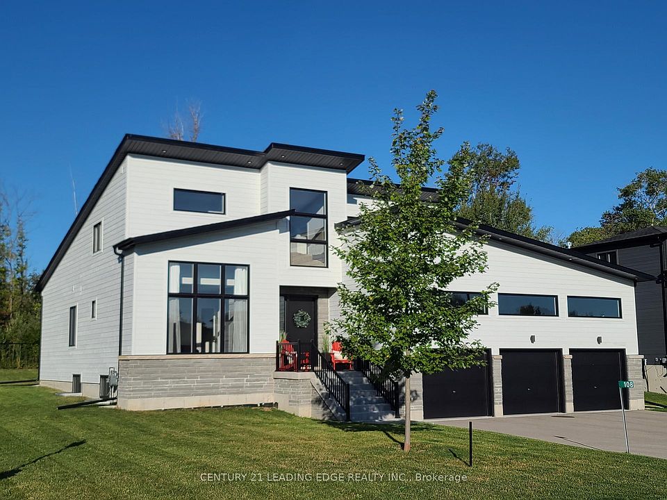Welcome home to 108 Goldie Crt., a true entertainer's delight that will not disappoint! This beautifully upgraded Alta model (2,375sqft) features a main floor open concept layout with a stunning vaulted shiplap ceiling with 3 decorative beams, upscale light fixtures, pot lights, hardwood floors & an upgraded 41 gas fireplace. Gather around the expansive 9'8 (sink free) quartz centre island with beverage fridge & microwave drawer. Stainless Steel GE Cafe fridge, induction stove, & dishwasher. Stylish farmhouse ceramic sink with sunfilled window & modern backsplash. Lots of storage, including double pots & pans drawers, extended cabinets & pantry. Dining room with spectacular view of conservation through the 12' by 8' sliding door. Spacious main floor primary bedroom with 5pc ensuite, (upgraded faucets & shower heads, glass 1/2 wall for shower & pocket door) and walk-in closet. Bedroom 2 (a great office/den) with large window on the main floor. Upstairs with two good sized bedrooms, cozy loft area & 4pc bath. Inviting foyer & main floor laundry. Basement with bonus 9' ceiling & radiant heated floor (great in the winter) and 200 amp electrical panel. Relax & watch the sunset on your two tier 400sqft deck (gas bbq hook-up). Desirable oversized 3 car garage with 9' wide doors & a 6 car driveway (no sidewalk). A few short steps to the Georgian Trail & Council Beach. A short drive to ski hills, golf and scenic Thornbury!