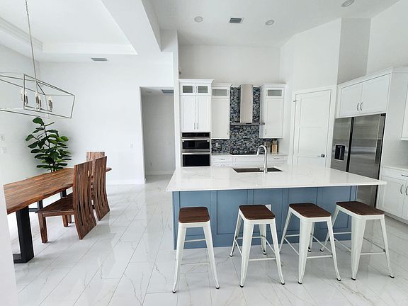 This beautiful, coastal contemporary, newer home is full of upgrades. This newly landscaped, Captiva floorplan, built by FCI Homes includes 4 bedrooms, 3 bathrooms, large great room, kitchen and dining area overlooking the pool and spa and has a 2-car garage with a circular driveway. This home boasts high ceilings, 8' sliders, impact windows, outdoor summer kitchen, and covered lanai. The bright, open concept design includes upgraded kitchen cabinets, quartz countertops, large island, walk-in pantry, and tile flooring throughout. The owner's suite has 2 walk-in closets and separate vanities. This beautiful property is located just minutes to the white sand beaches of Marco Island, parks, tennis and pickle ball courts, golf, shopping, dining, schools, and the YMCA.