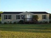 Sold "As- Is". Split floor plan,4 BR/2BA double wide on 1 acre lot w/storage shed &concrete pad and screened back porch. Kitchen has island and Master Bathroom has dual vanity, garden tub and separate shower. $100 down payment incentive to owner occupant buyers using FHA financing. Case # 105-127369.
