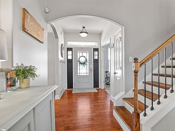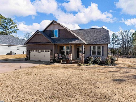This quality built home situated on just under an acre in beautiful Greer, SC is a must-see! Located just minutes from Downtown Greer off Highway 14, this beautiful craftsman style home with upgrades galore features 4 bedrooms and 2.5 bathrooms. With NO HOA and plenty of space to spread out on the .97 acre lot, the possibilities are endless! The exterior of the home features a well-maintained landscape, ample parking with an extra pad on the driveway and a 2-car garage with stone accents. The front porch also has beautiful attention to detail with stamped concrete and stone. As you step inside, you will be greeted with hardwood floors throughout the foyer and main living areas and fresh paint throughout the entire home. There is an office (or fourth bedroom) on the left that is full of natural light. The kitchen is to the right, and features a spacious breakfast nook/ sitting area, a kitchen island, and updated stainless steel appliances. The modern finishes in the kitchen include gorgeous stone backsplash, updated hardware, granite countertops and beautiful two toned cabinetry. The spacious dining area leads into the open concept living space which features a cozy fireplace with gas logs. The breathtaking primary bedroom located on the main floor features beautiful trey ceilings, brand new LVP flooring, and a large walk in closet. The primary bathroom has a double vanity, a large garden tub and a standing smooth glass shower door. Don’t miss the updated half bathroom and laundry room with built-in storage that is also located just off the living room for main level living convenience. Two additional bedrooms with large closets and a bathroom to share can be found on the second floor up the exposed hardwood staircase. The second floor also features newly installed LVP flooring throughout, making the entire home free of carpet! The back of the home features a stunning screened in porch with wood ceilings, privacy screens, and a newly installed glass door for convenient entry from the main living area. The large extended deck leads you directly to the well-maintained above ground pool. Solar powered lights surround the property and light up the fence and back deck at night making it a true backyard oasis. Behind the fenced in yard, there is a metal building that conveys with the property for storage, a work area, and so much more. Don’t miss this rare opportunity to own this beautiful home 11 minutes from BMW and interstate 85; and only 2 miles away from Lake Cunningham that allows public access to boating and fishing. Schedule your showing today!