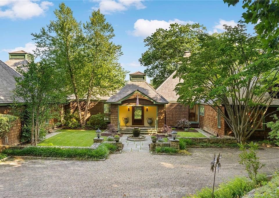 Rare and private, resort-like 10-acre setting with luxurious main home and cottage. This one-of-a-kind 10 acre Estate offers the ultimate in privacy, serenity and luxury. Enter through stone pillars to expansive rolling lawns, stone walls, pond and specimen trees. Designed by acclaimed architect Victor Christ-Janer, this is home has perfect flow for entertaining with floor to ceiling windows, living room with tray ceiling, custom lighting for displaying art, fireplace, bar and large dining room two poster rooms and chef's kitchen. First floor primary bedroom suite has dual spa baths and dressing rooms. Main home has three additional bedrooms each with ensuite baths. Family room overlooks the gardens and opens to the Gunite pool with waterfall spa. Guest house features 3 bedrooms, 2.5 baths and an additional 3 car garage bringing total garage spaces to 5 - perfect for a car enthusiast!