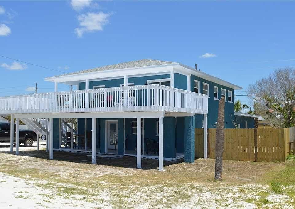 Two story located across from the desired Dedicated Beach in Mexico Beach. Panoramic views of the Gulf of Mexico 24/7. 2BR/1.5B upstairs with kitchen dining living and a wide front porch offering those sunset views. Downstairs is 2BR/1.5B with kitchen dining living and a covered front porch. There is a 2 car attached garage. The fenced back yard has an inground pool.