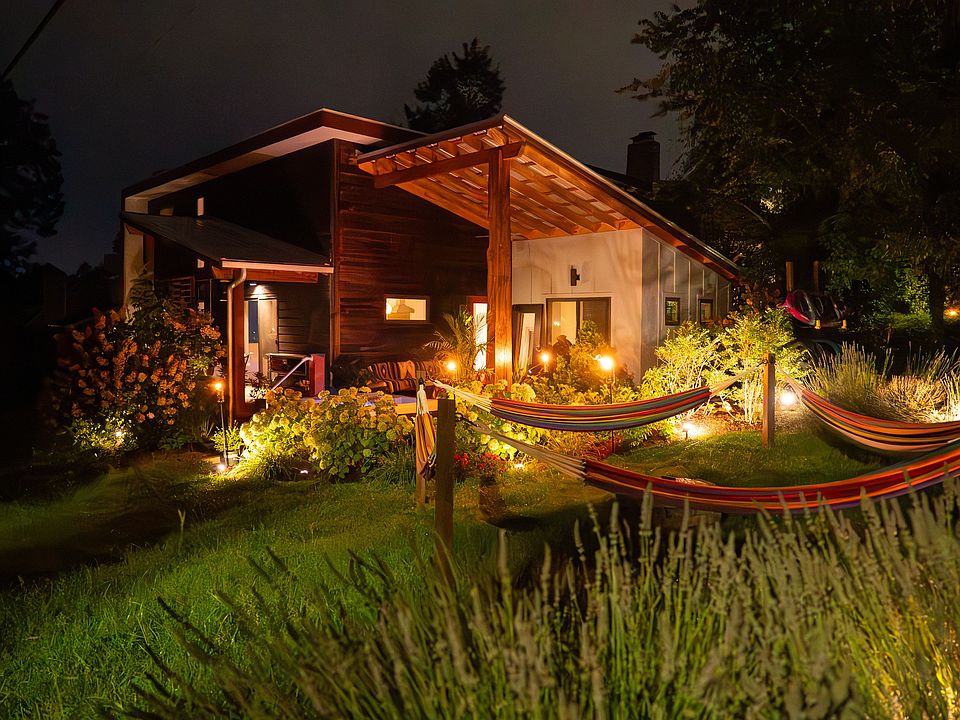 - Exterior features: 2 Car Driveway, Bar Cart, Barbecue, Bathtub, Bonus Loft, Cleaning Supplies, Electric Vehicle Charging Station, Firepit, Garden, Gourmet Coffee Maker / Espresso Machine, Hammocks, Heating system: Wall, High Speed Electric Car Charger, High Speed WIFI, Kayaks, Lawn, Luxury Towels and Linens, Outdoor Solar Lighting, Smart Lock System, Smart TVs with Streaming Services, Trash/Recyling Shed, Utilities included in rent, Video Game Console, Wireless Charging Stations