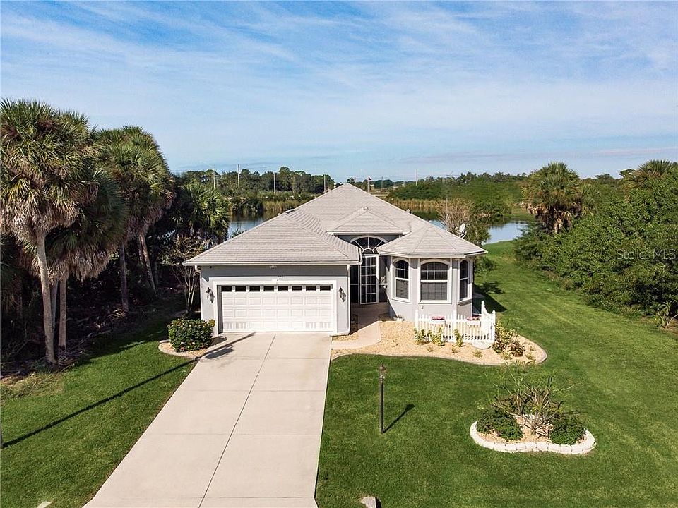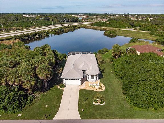 Location! Yes! On a lake,2 blocks from hurricane evacuation route.Custom Schroeder-built Cape Haze 3-bed home with upgrades & features including; 2.5 baths,heated salt water pool,over-sized garage Close to grocery stores, malls, movies, beaches, restaurants, and golf nearby. Lots of nature in and around the lake. Fish, kayak, canoe, or crab in your own backyard. High tray ceilings, open split-floor plan, wrap-around aquarium window & large windows bring the outdoors in.The spacious master bedroom suite offers large walk-in closet, separate linen closet, Roman shower, vanity with dual sinks & a separate toilet room. Ceramic diagonally-tiled floors throughout. Lots of storage.The kitchen has 16' of upper and lower cabinets, an 8-foot shelved pantry, plus eating area.Laundry area offers another 5' of pantry/broom closet, another 5 ft of upper & lower cabinets, laundry folding counter & half bath.Ceiling fans in each bedroom, the great room & lanai. The fully screened lanai has a heated salt-water pool & outdoor shower. The oversized garage has 9' of closed storage & an extra 6 ft of depth to store all your toys. Extras: lake-fed irrigation system, security system, motion sensor lights, security cameras with remote viewing, Storm Smart roll-up hurricane shutters,& remote- or manually-operated shutter on lanai. Whole house Kinetico water purification/softening system.Home is built to Charlotte County's hurricane standards.Newer A/C,PH,salt-converter,MW, DW,paint in & out.