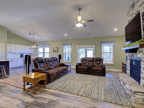 Venture into 108 Inlet Pointe Dr and unveil the unique charm of this home. A contemporary glass screen door welcomes you, leading to an entrance secured with a ring door camera and keyless access. The living room greets you with its majestic stone fireplace extending from floor to ceiling, perfect for chilly evenings. The kitchen boasts modern appliances, including a refrigerator, while the laundry area offers added cabinetry for ample storage, complete with a washer and dryer. LVP flooring sweeps across the main level and ascends the stairs to a spacious 15x20 foot bonus room, featuring a full bathroom, ideal for a study or guest quarters.