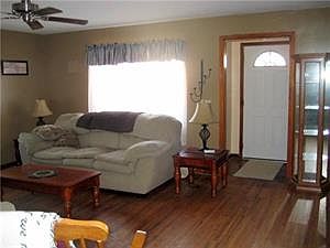 View this lovely brick / vinyl 4 bedroom Cape (2 up, 2 down) with a large eat-in kitchen & lots of wood cabinets, ceramic tile backsplash, vinyl floor * Spacious living rm / dining rm combo, hardwood floors & ceiling fan * Completely remodeled full bath, pedestal sink, new tub, ceramic tile walls & floor, ceiling heater fan - ALL in 2010 * Full part finished basement (poured walls & working toilet),* HWT 2010 * Roof, sump pump & electrical service 2006 * 2.5 Car detached garage with opener (has electric) * Large country lot